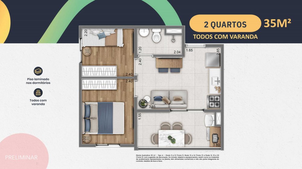 - Área Privativa: 35 m²