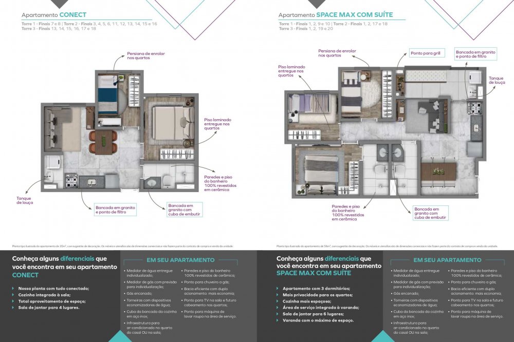 Apartamentos de 2 ou 3 quartos com opção de suíte, varanda e vaga. E, para completar, uma área de lazer prime super completa com: piscina, salão de festas, churrasqueira, brinquedoteca, academia, e muito mais!
