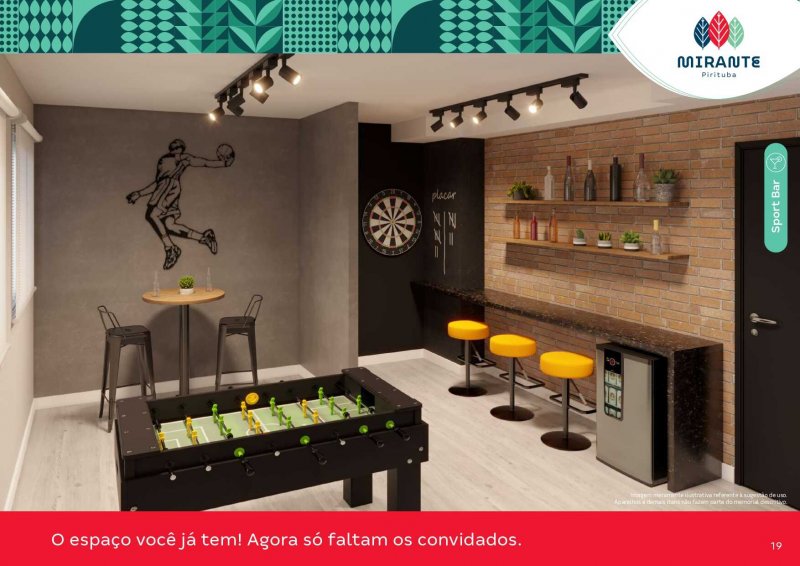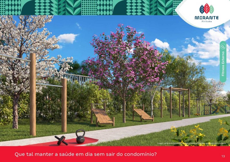 Sala de saúde, Ginástica, Brinquedoteca, Espaços gourmet + louge, Sala de jogos, Pet care, Redários, Playground's, Fitness externo, Praça de jogos, Praças, Salão de festas e Pergolado.