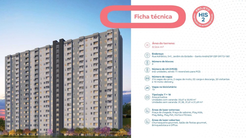 Condomínio Completo Com 642 Unidades Em 2 Blocos, Localizado Na Rua Adriático, 541 - Jardim Do Estádio, Santo André. Apartamentos De 2 Dormitórios Com Opção De Varanda E Vaga. Área De Lazer Diferenciada Para Toda A Família!