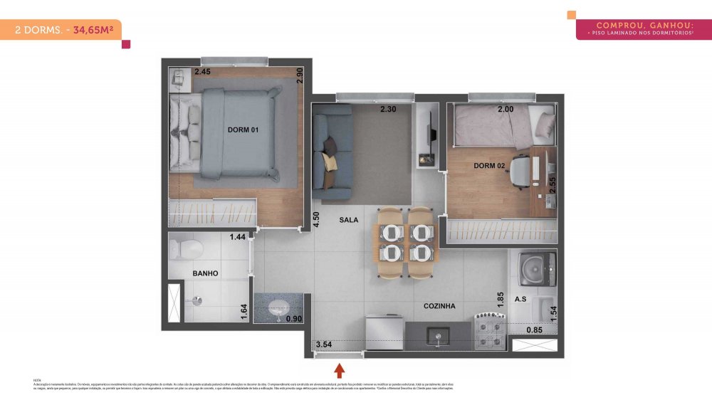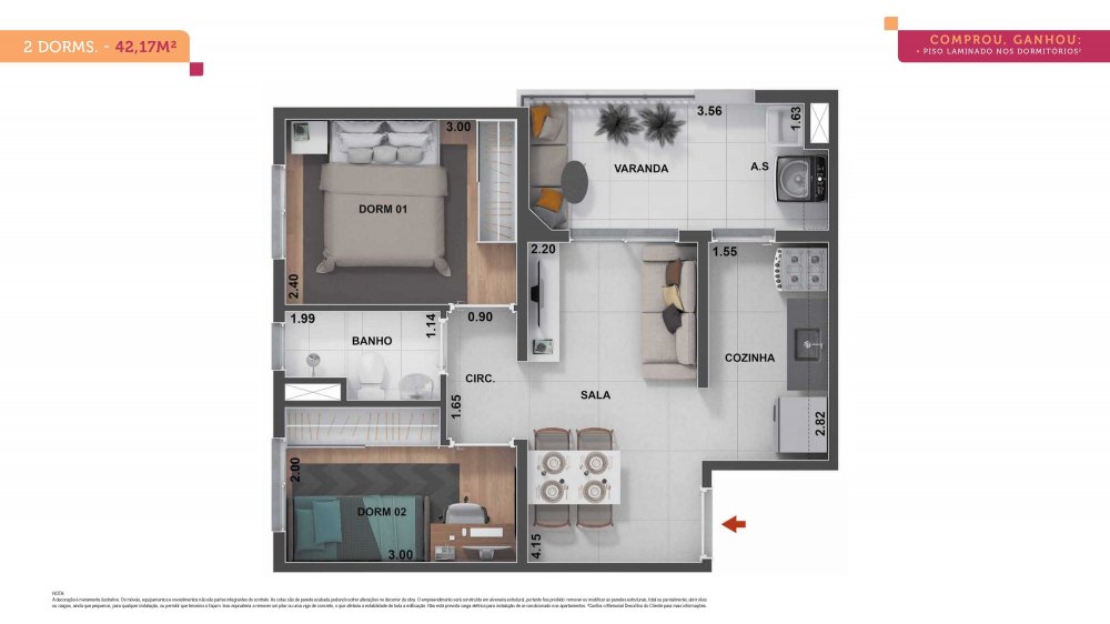 - Tipologia: Apartamentos de 1 e 2 dormitórios.