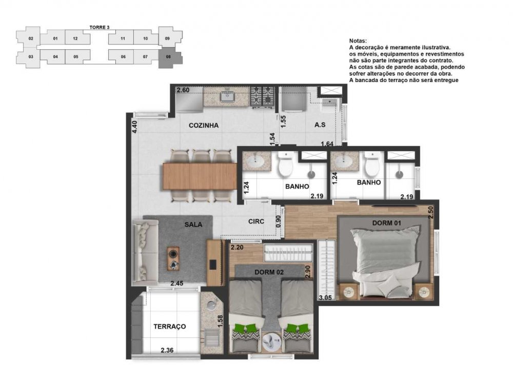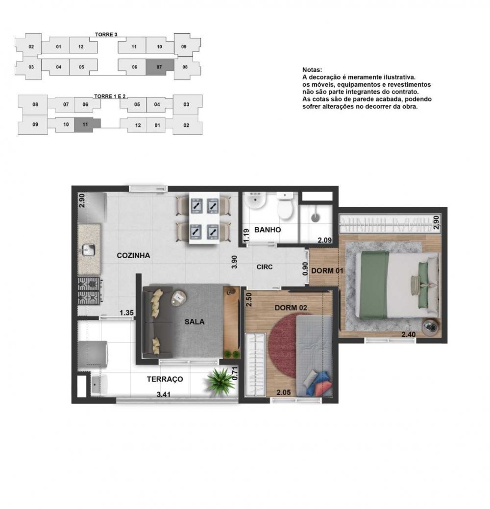 - Apartamentos de 49m² a 56m² / Todas as unidades com suíte