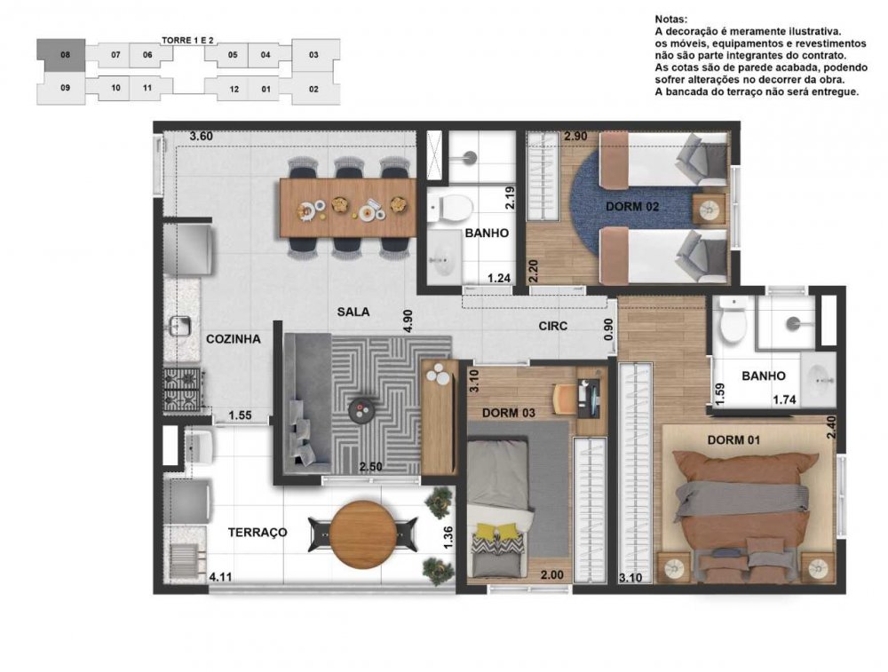 - Aparatamentos 2 e 3 dormitórios - Todas as unidades com varanda e vaga