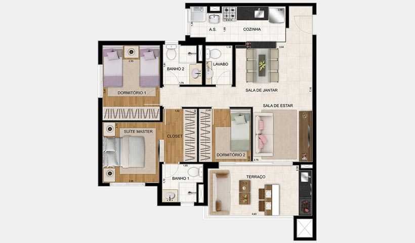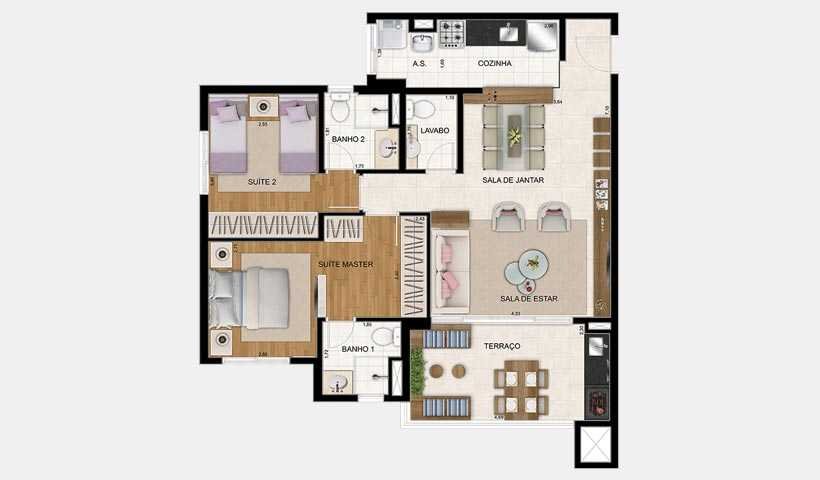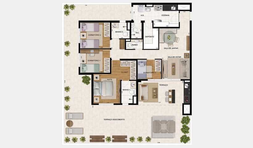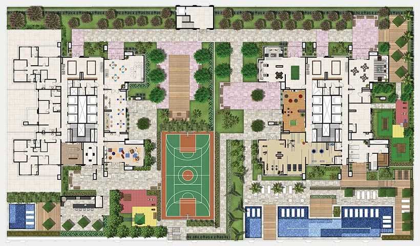 Conjunto de Condomínio chamados de Alameda, Botânica, Jardim, Praça e Reserva possuem apartamentos com metragens que vão de 38 a 154 m² privativos, repletos de comodidade e alto padrão. Isso sem falar no lazer de cada condomínio, que inclui piscina, academia, salão de festas, brinquedoteca, salão de jogos e muito mais.