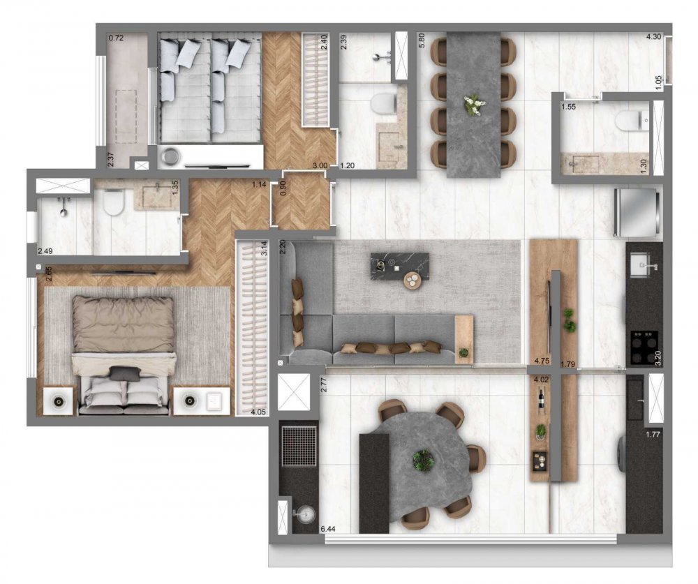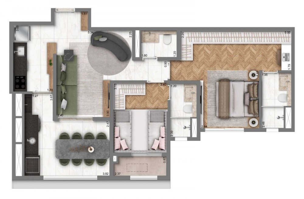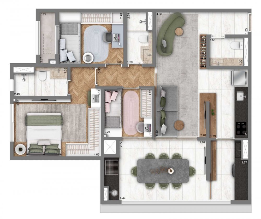 - Área Privativa: 43 m²