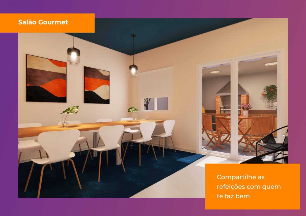 Lazer: Salão gourmet, salão de festas, brinquedoteca, churrasqueira e playground.