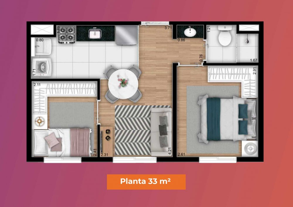 - Área Privativa: 33 m²