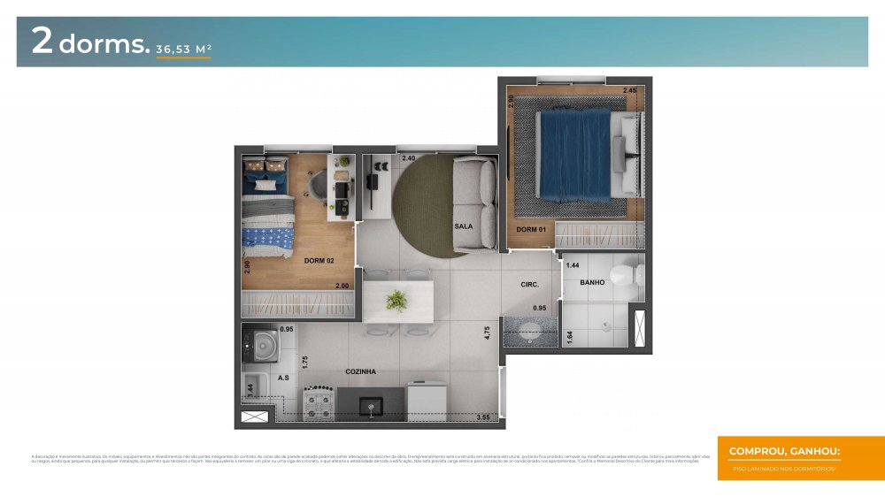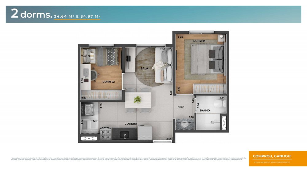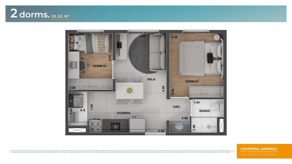 - Dormitórios2 Banheiros1