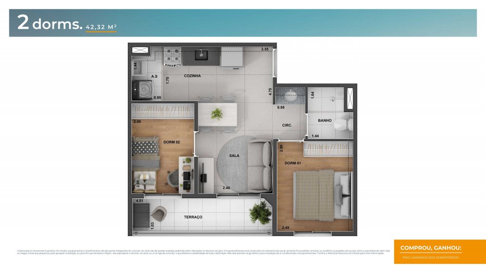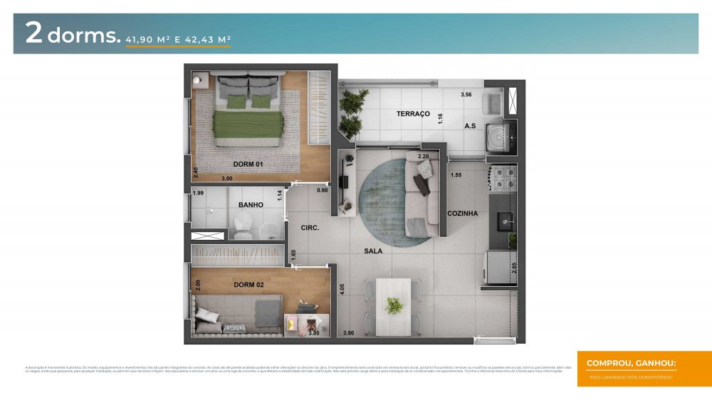 - Área Privativa: 42 m²