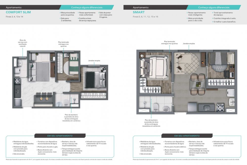 - COMFORT SLIM COM VARANDA - 40M² / 2 Dormitórios