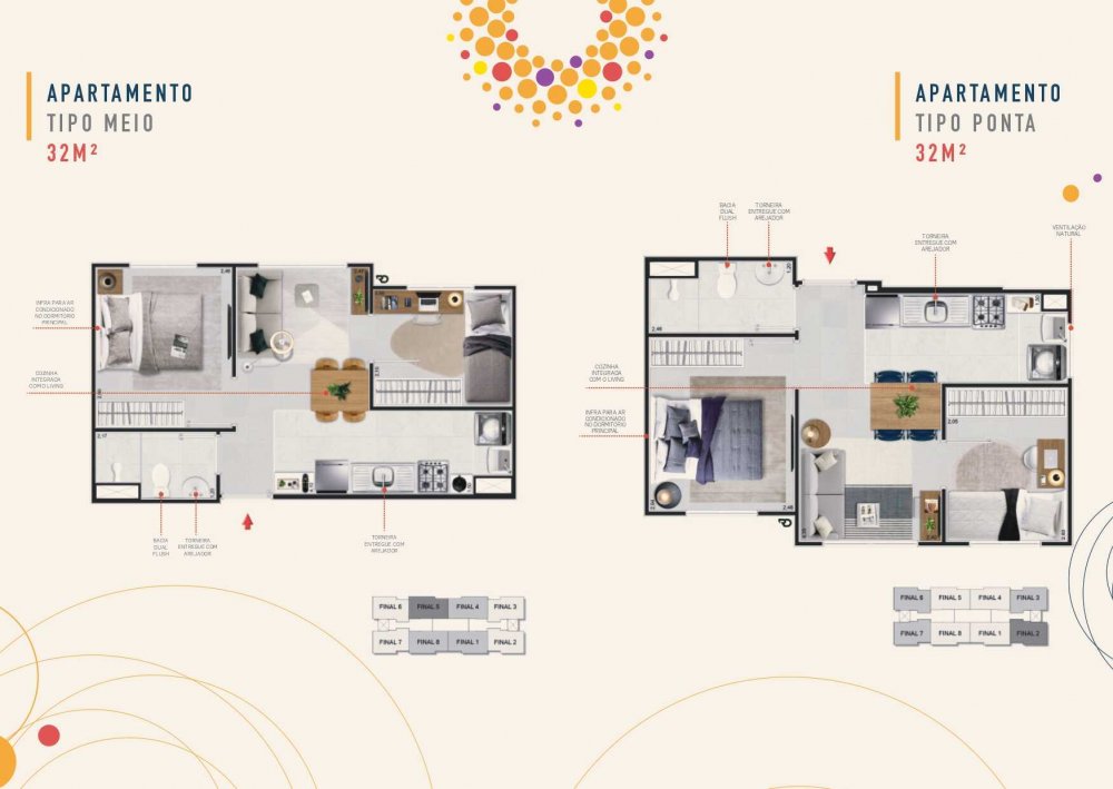 - Tipologia das unidades: 2 DORMS. - 32M²
