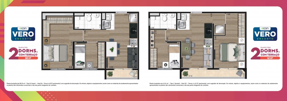 Vero Encanto Econ / Lançamento 1 ou 2 Dormitórios, 26 a 41m²