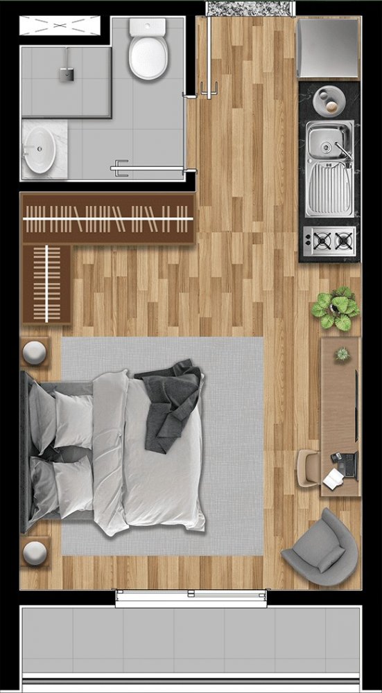 Lazer e áreas comuns (studios): Academia Equipada, Cozinha Compartilhada, Lavanderia, Coletiva e Espaço Office