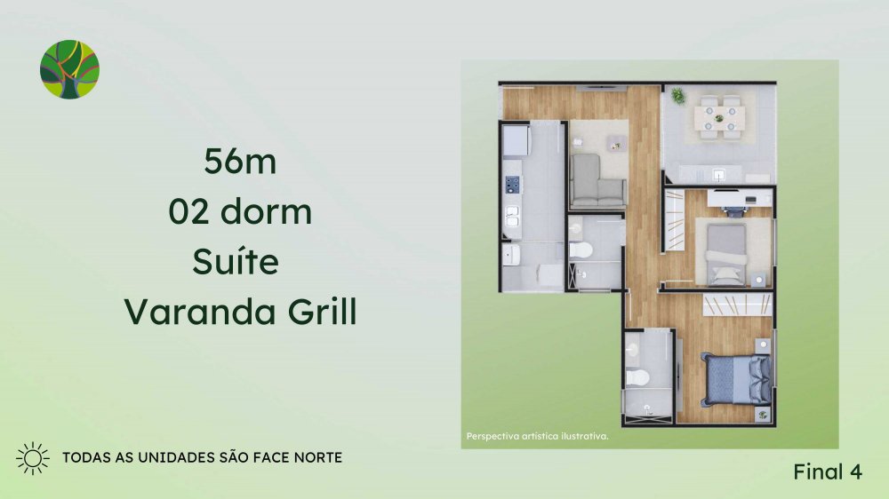 - 56 m² 2 dormitórios, Suite, Varanda Grill e Vaga