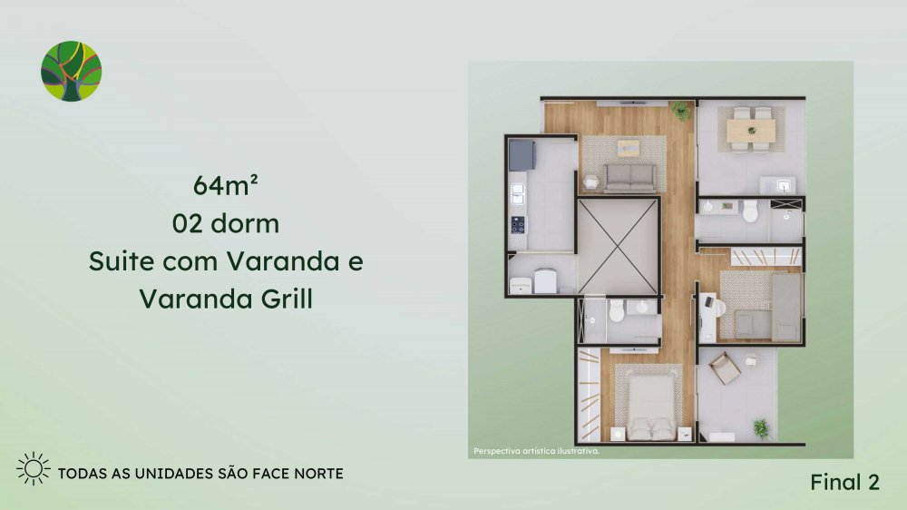 - 64 m² 2 dormitórios, Suite, Varanda Grill e Vaga