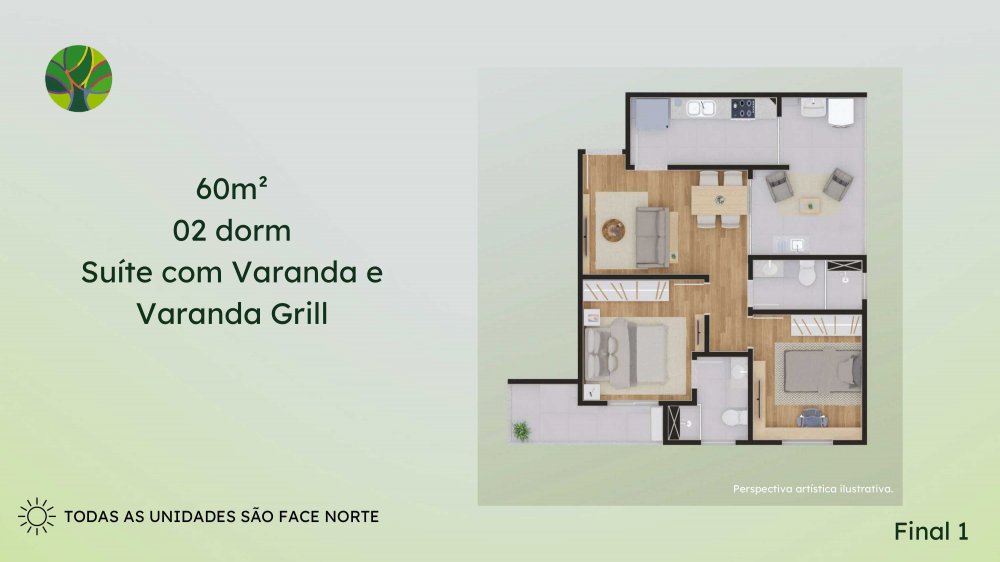 - 60 m² 2 dormitórios, Suite, Varanda Grill e Vaga