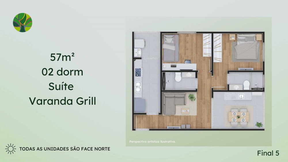 - 57 m² 2 dormitórios, Suite, Varanda Grill e Vaga