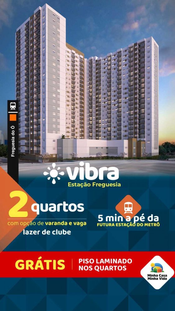 O VIBRA ESTAÇÃO FREGUESIA É O LUGAR IDEAL PARA VOCÊ: COM 1 OU 2 DORMITÓRIOS, VAGA E VARANDA OPCIONAIS, ALÉM DE UM LAZER DE CLUBE. A LOCALIZAÇÃO É PRIVILEGIADA, SITUADO PRÓXIMO A FUTURA ESTAÇÃO DE METRÔ FREGUESIA DO Ó, MERCADOS E UMA VARIEDADE DE SERVIÇOS E COMÉRCIOS GARANTEM TODA A COMODIDADE QUE VOCÊ DESEJA. VENHA VIVER UMA EXPERIÊNCIA ÚNICA!.