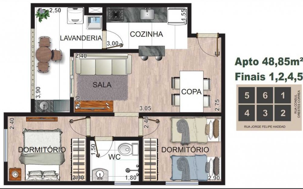 - Área Privativa: 48 m²