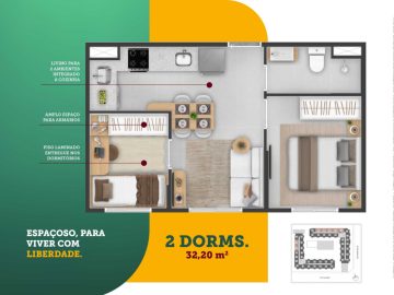 - Dormitórios2 Banheiros1