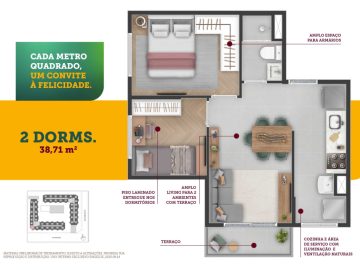- Opções de Aptos 1 ou 2 Dormitórios / Varanda / Plantas de 26m² a 38m² / Lazer Completo