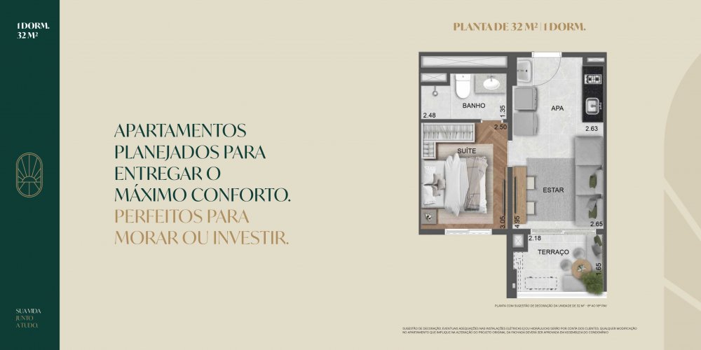 32 m² (1 dorm. - NR*) - Sem vaga: 72 unidades