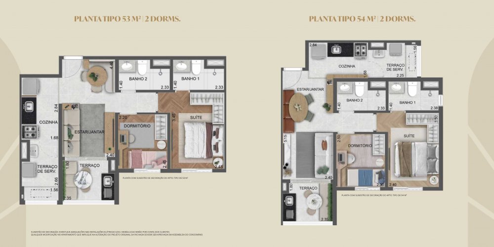 53 m² (2 dorms. - 1 suíte) - 1 vaga: 109 unidades