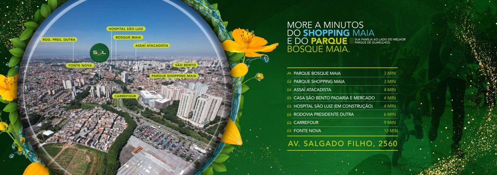 Conheça o SOL CLUBE MAIA, um empreendimento com a qualidade da SOL Construtora, localizado em um dos melhores endereços de Guarulhos. A apenas 500 metros do Parque Shopping Maia, esse projeto encantador oferece apartamentos aconchegantes de 2 e 3 dormitórios com suíte, terraço gourmet com lazer completo.