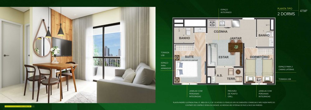 - Área Privativa: 47 m²