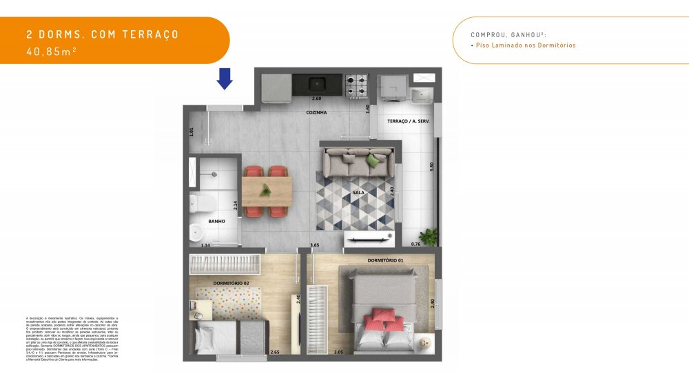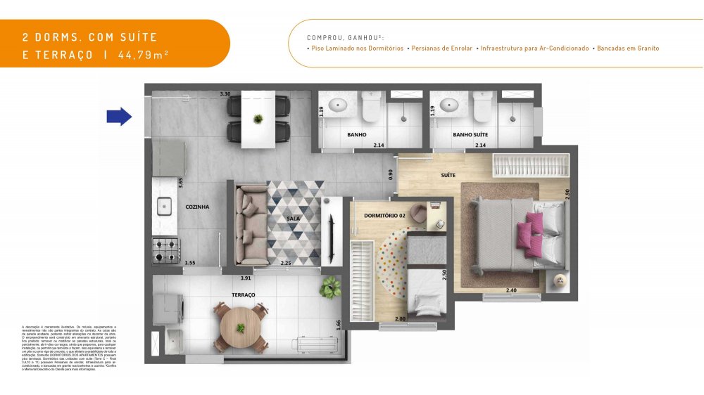 Apartmanrtos 2 Dormitórios / Opções de 34m² a 44m² / Opções Suite, Varanda e Vaga