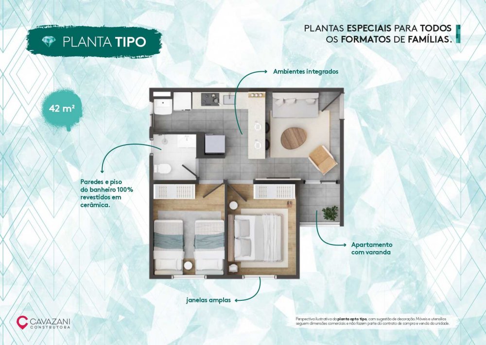 - Área Privativa: 43 m²