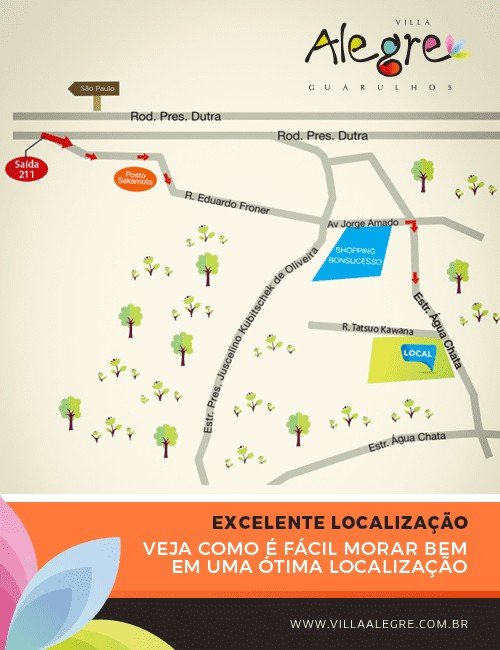 • Situado na Rua Tatsuo Kawana / Estrada da Agua Chata, o Condomínio Villa Alegre.