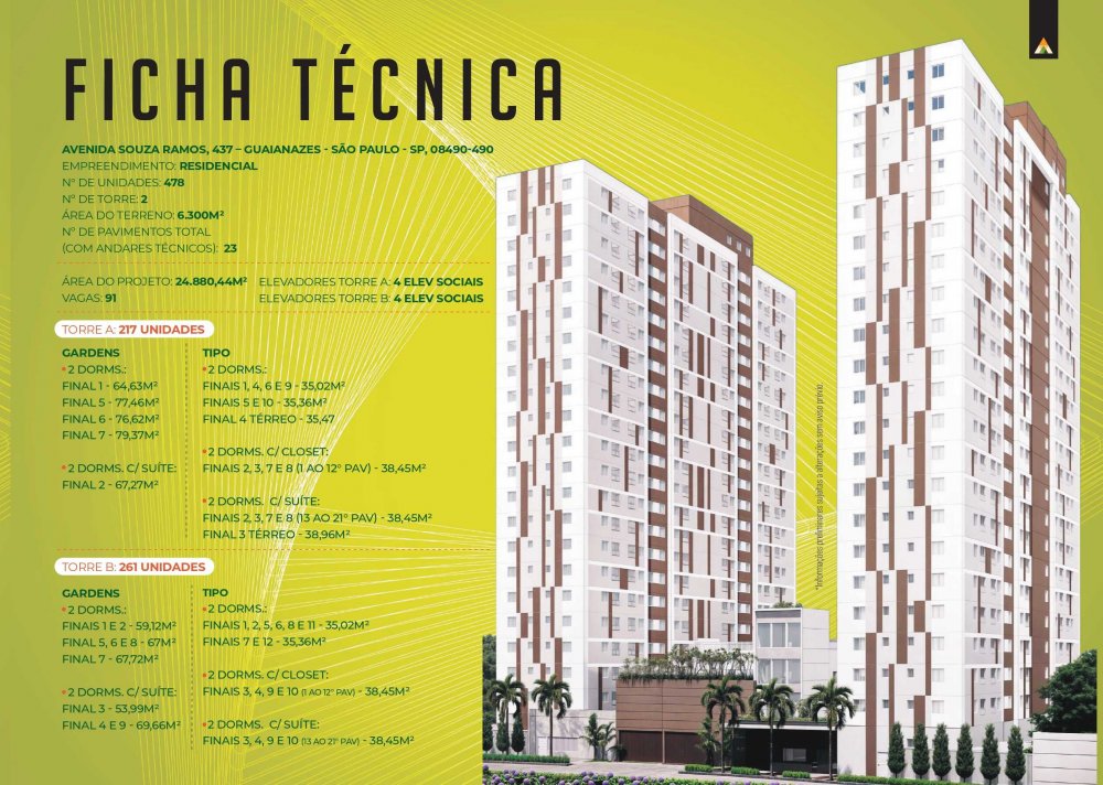 - Torre A: 217 unid. / Torre B: 261 unid.