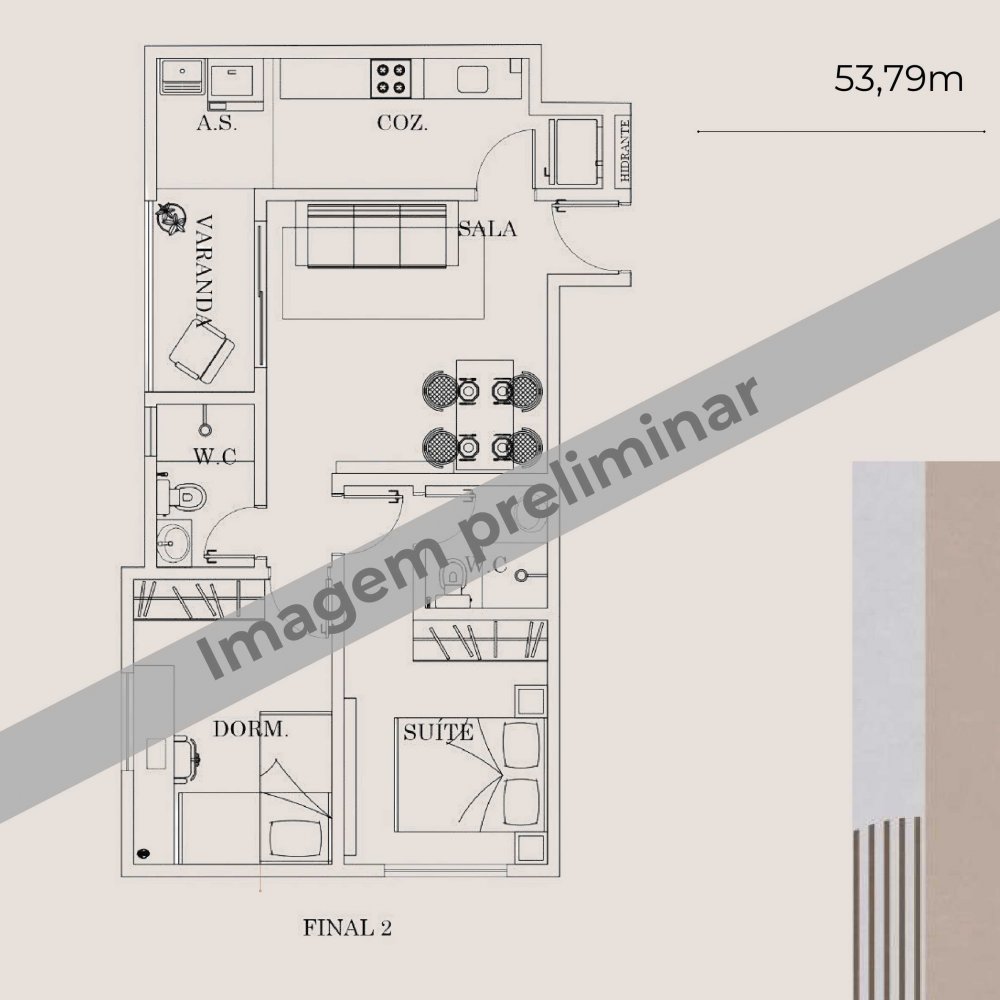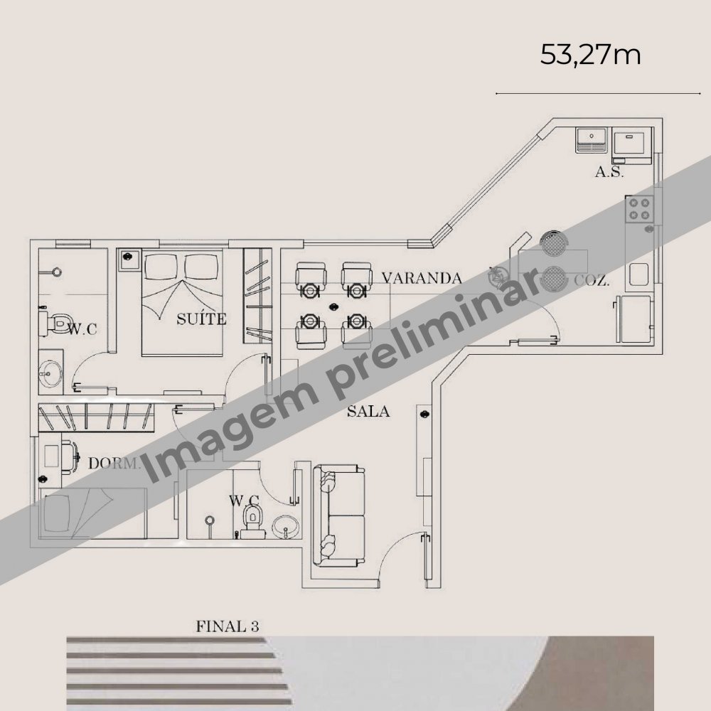 - Área Privativa: 53 m²