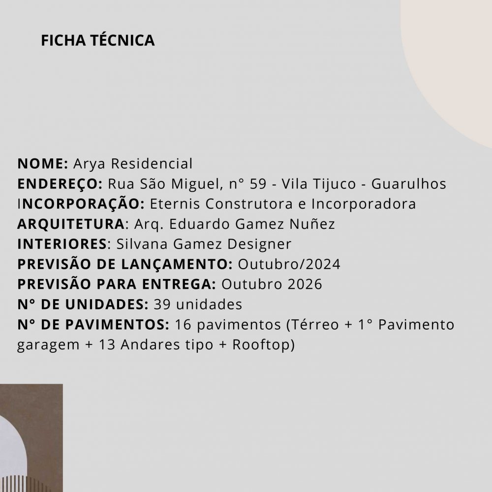 ARYA RESIDENCIAL - LANÇAMENTO VILA TIJUCO - GUARULHOS