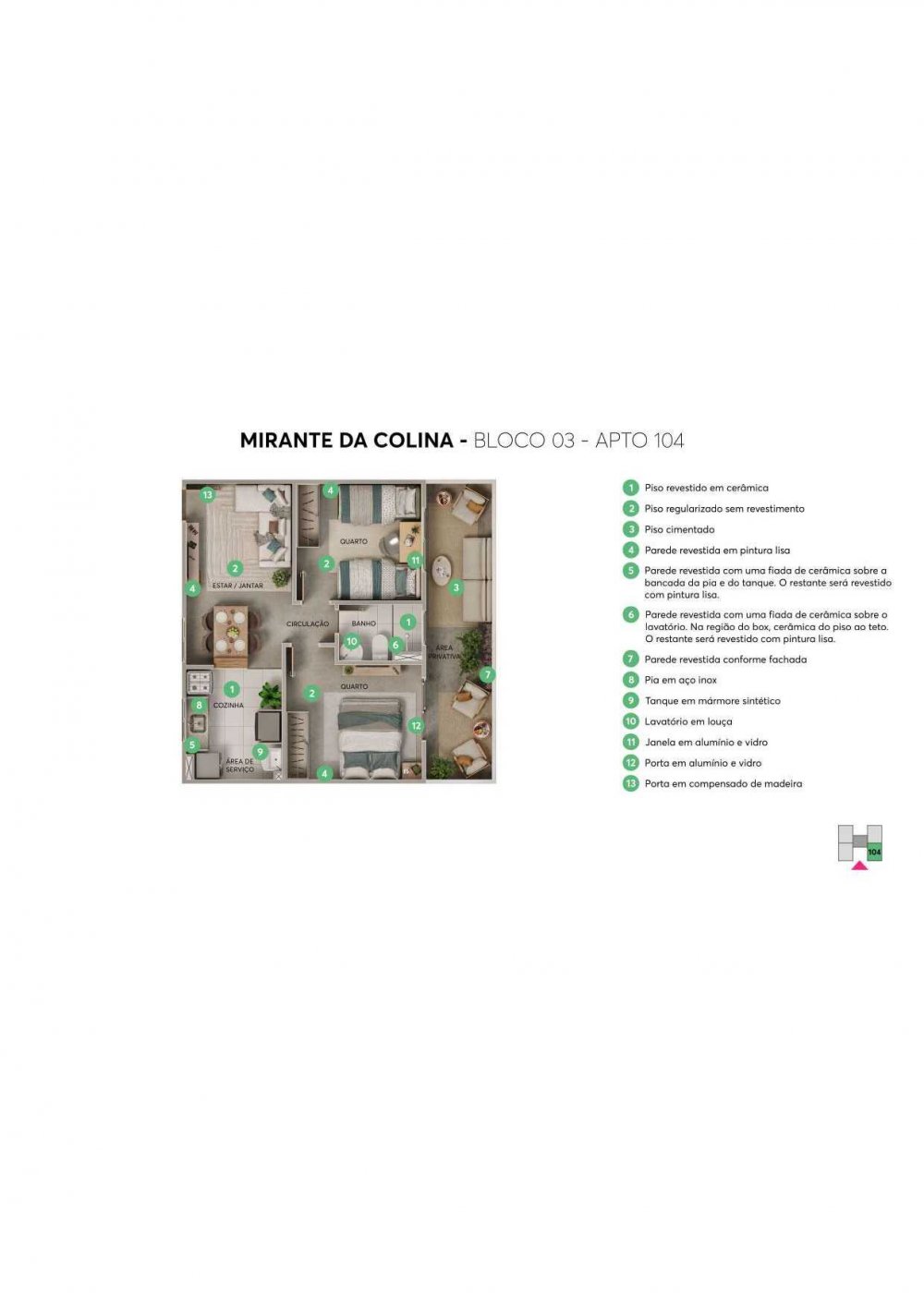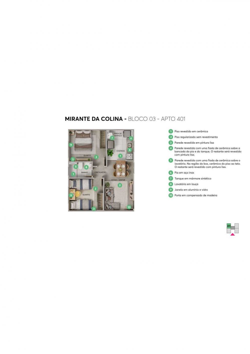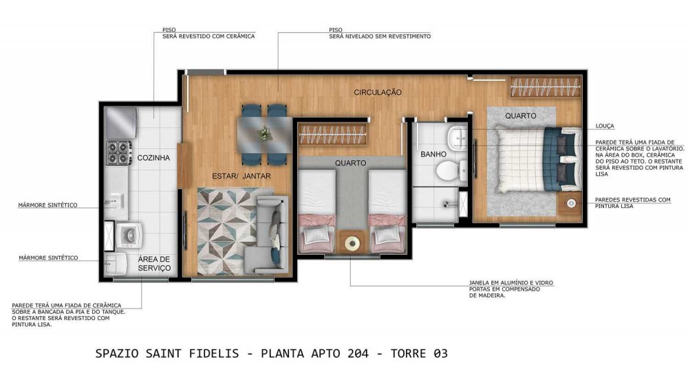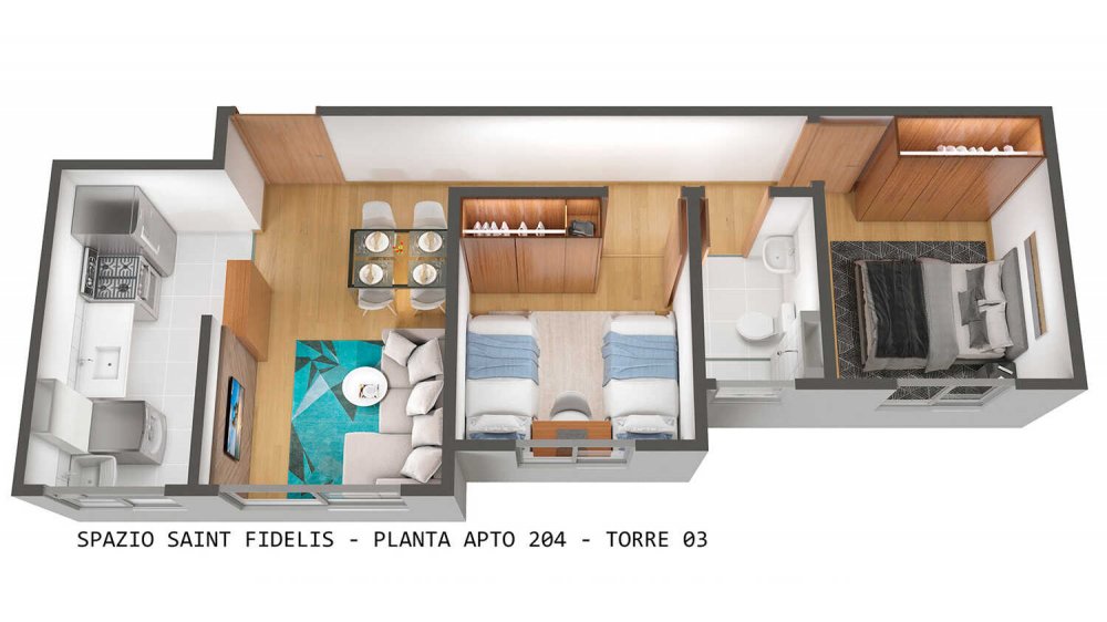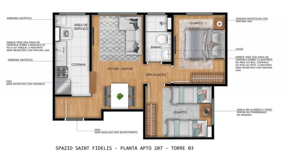 - 2 Dormitórios PCD: 39,30m²