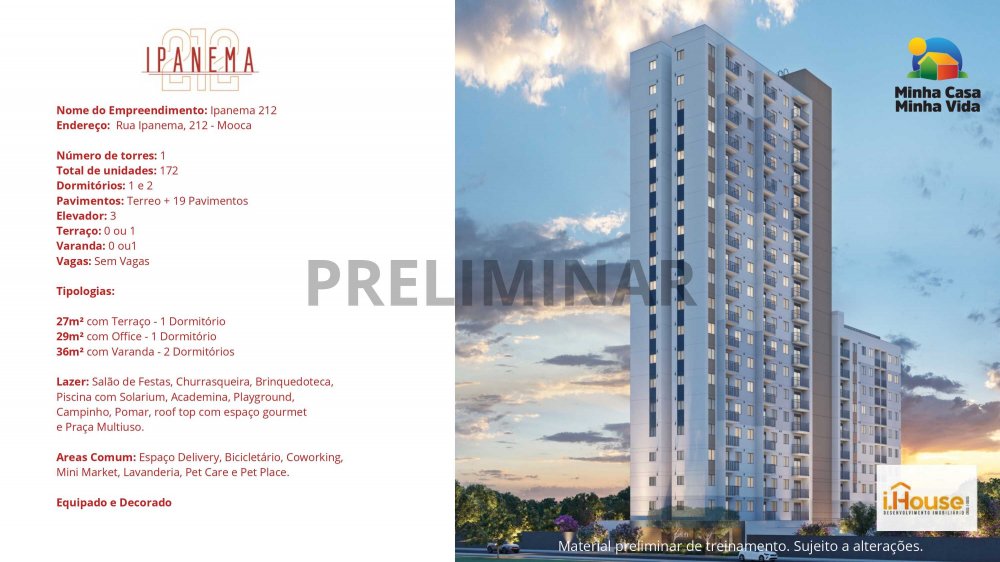 - Endereço do Empreendimento: R. Ipanema, 212 - Mooca, São Paulo - SP, 03164-200