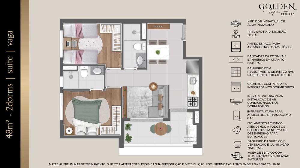 - Lançamento Tatuapé. Apartamentos de 1 quarto (33,92m²), 2 quartos (36,96m²) e 2 quartos com suíte, terraço e vaga (48 e 48,68m²) à venda na planta a poucos passos do Metrô Carrão! Um condomínio clube no melhor do Tatuapé, a duas quadras da Celso Garcia. Conheça!