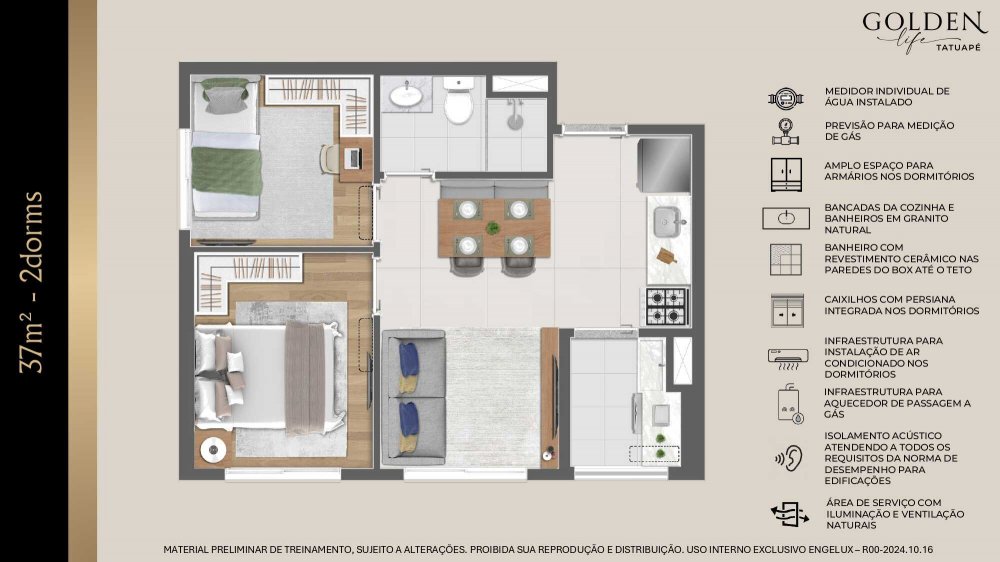 Lançamento Com Opções de Aptos 34,50m² / 37m² / 48m² / 49m². Opções Com Varanda, Vaga e Suite.