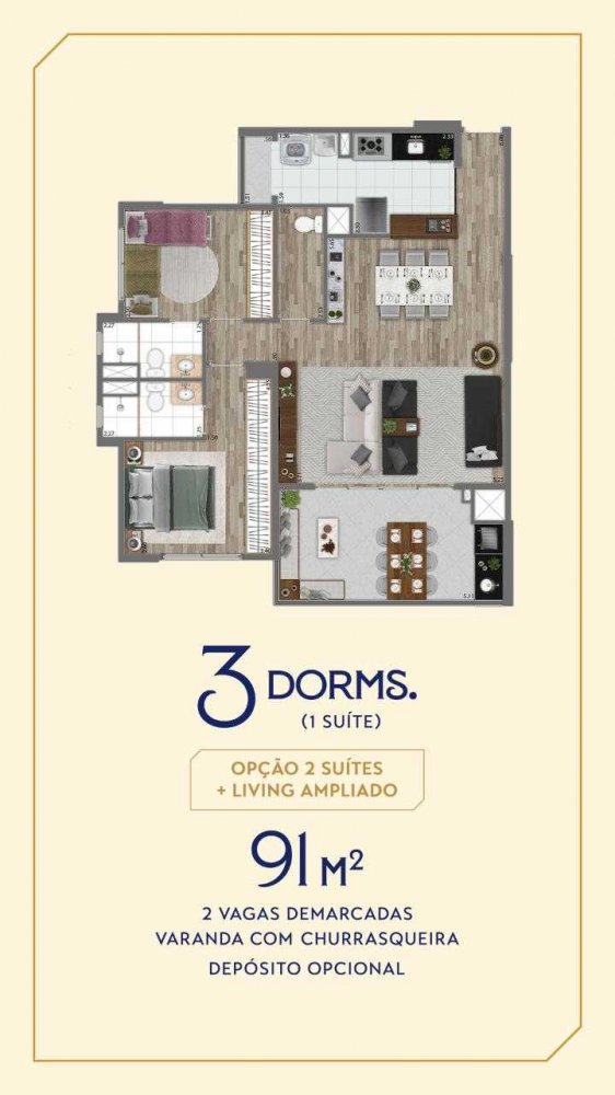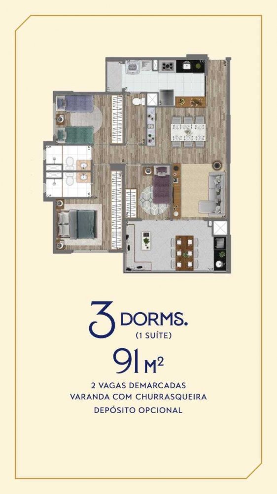 - Área Privativa: 91 m²