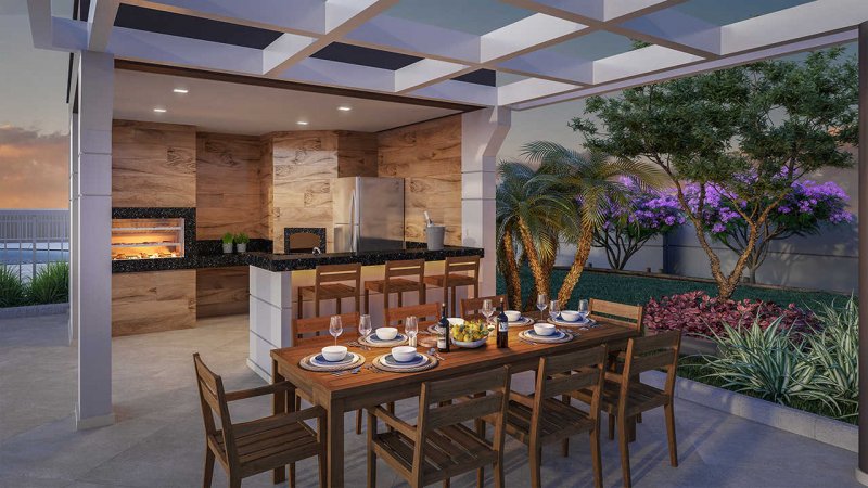 VARANDA GRILL COM BANCADA, PIA E PONTO ELÉTRICO NOS APTOS DE 56M² -