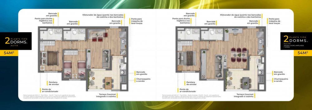 - Área Privativa: 54 m²