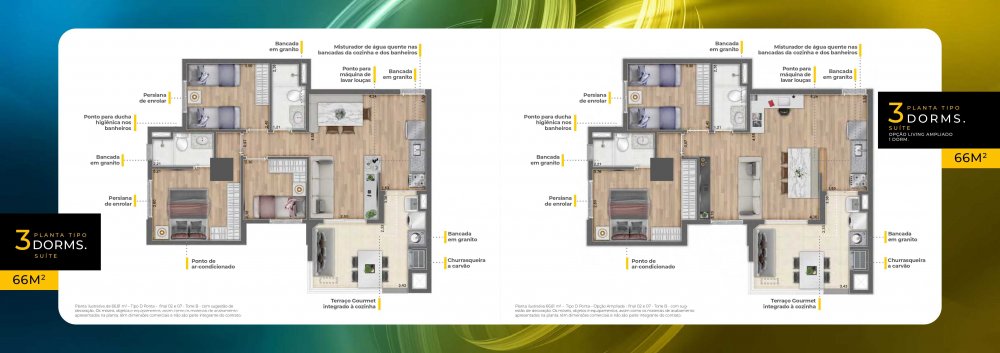 - 3 Quartos, terraço e suíte (66m²) - 101 unidades