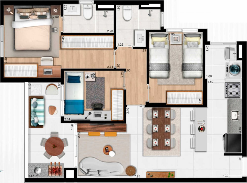 Mais DetalhesDormitórios3 Suítes2 Banheiros1 Garagens2
