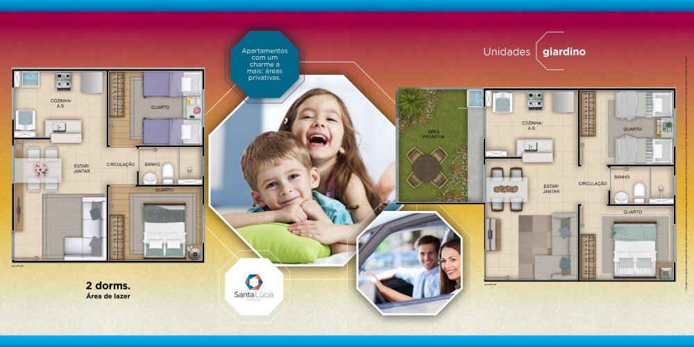 Apartamento com 51m² / Garden. O imóvel conta com 2 dormitórios amplos, sala de estar com dois ambientes, cozinha americana integrada com armários planejados, área privativa como lavanderia ampla, 1 banheiro, 1 vaga de garagem.