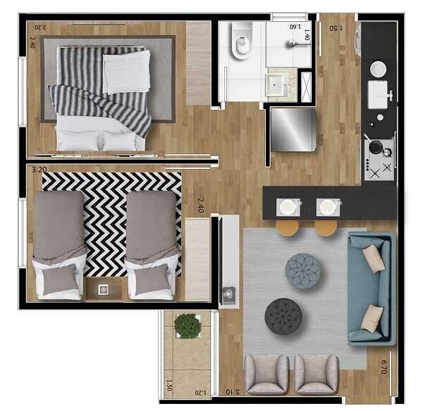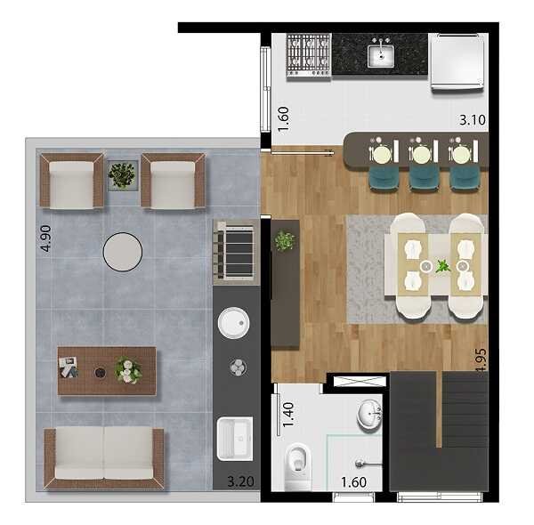 Apartamento 42m² / Varanda / Com Alguns Planejados