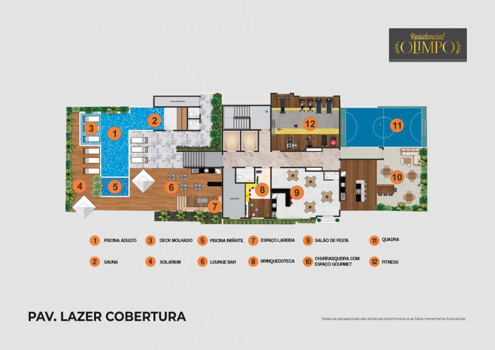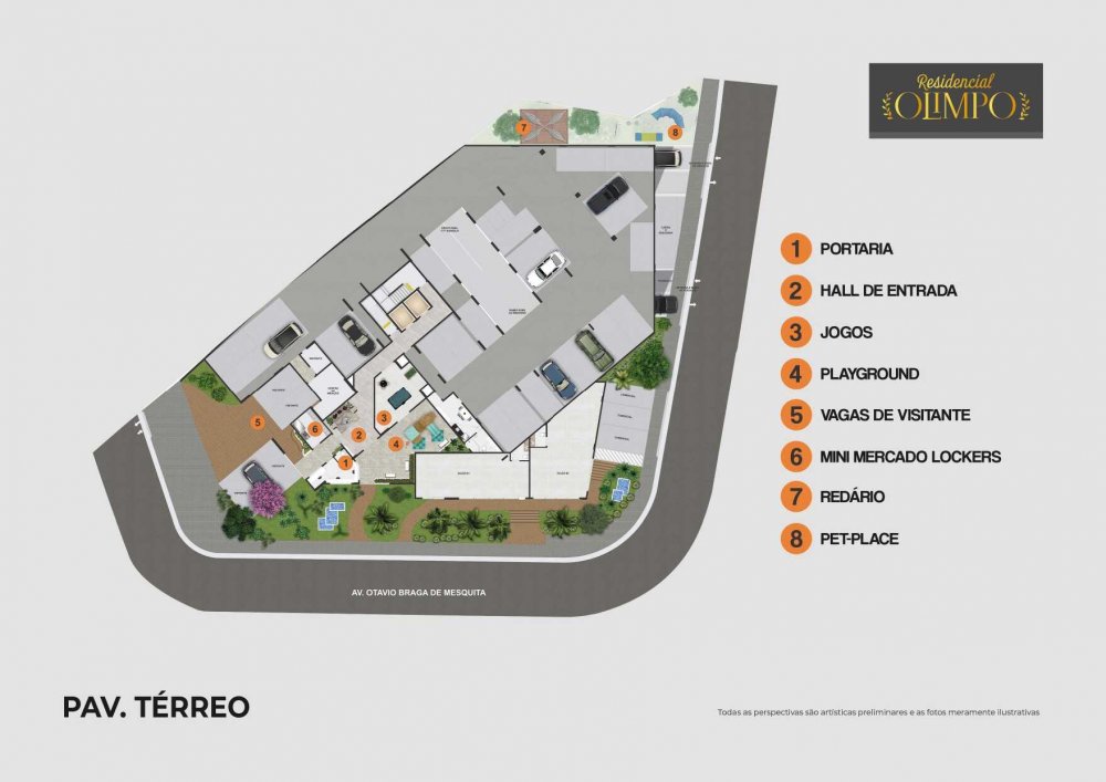 Vagas para visitantes, Portaria, Hall social, Brinquedoteca, Pet Care, Fitness, Área gourmet, Piscina infantil, Piscina adulto e Infantil,Playground.