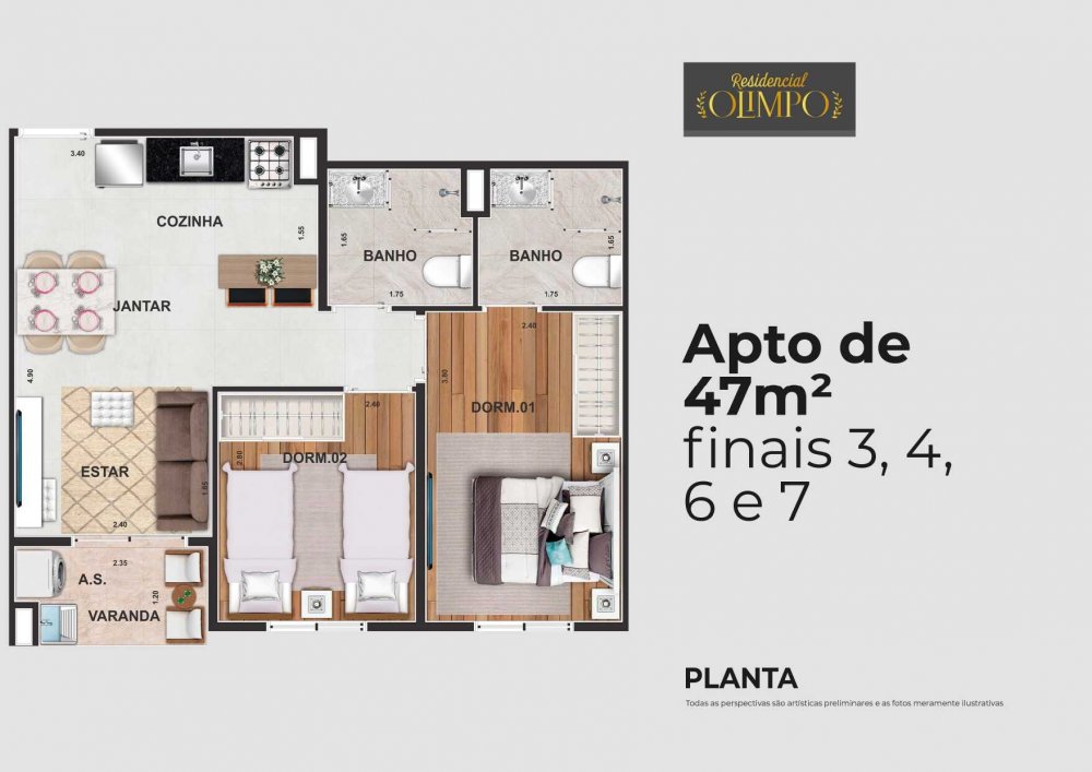 - Área Privativa: 50,43 m²