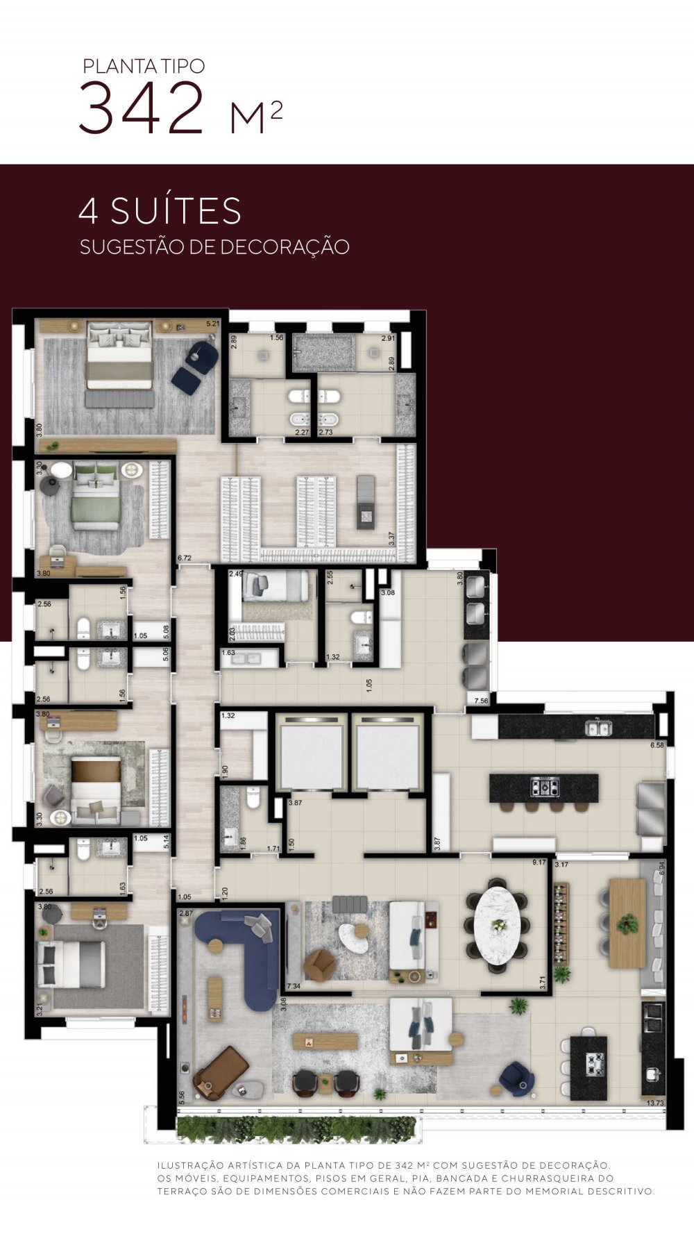 - Nº de Suítes:......................................................................3 suítes ou 4 suítes