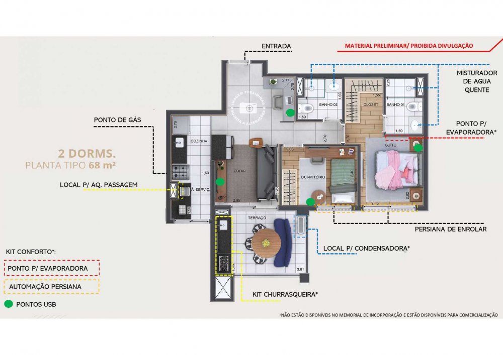 - Área Total: 68 m²